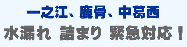 一之江、鹿骨、中葛西での水の困った即解決!急な水道トラブルに緊急でかけつけ訪問し、蛇口の水漏れ、トイレ詰まり、排水の溢れ、タンクの故障など修理いたします。