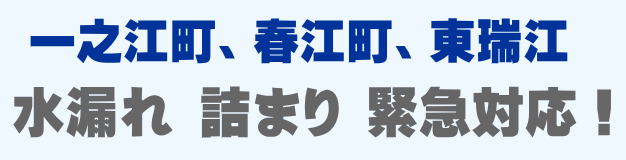 一之江町、春江町、東瑞江 での水の困った即解決!急な水道トラブルに緊急でかけつけ訪問し、蛇口の水漏れ、トイレ詰まり、排水の溢れ、タンクの故障など修理いたします。